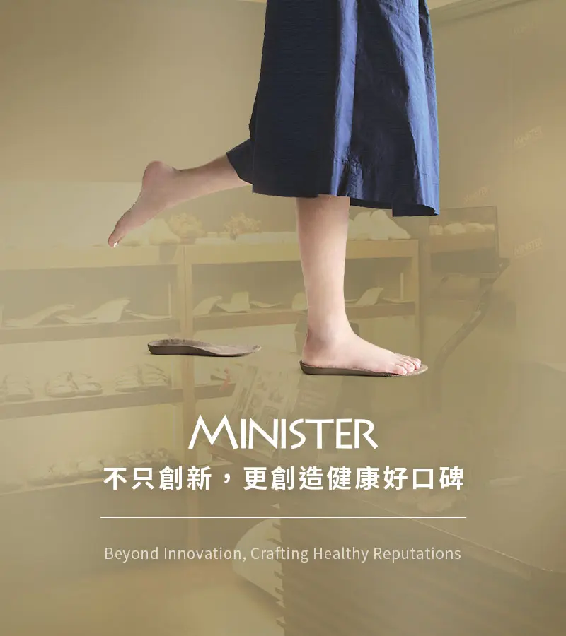 市面上的足弓墊都半墊式為主,只提供一個點的支撐,會使腳掌壓力不平均,而這種形式的鞋墊支撐效果並不全面,一整天長時間穿著後,會覺得腳沒有那麼舒服,不過MINISTER突破了這個難題,開發出全墊式的足弓墊,使支撐、均壓的效果更佳。
